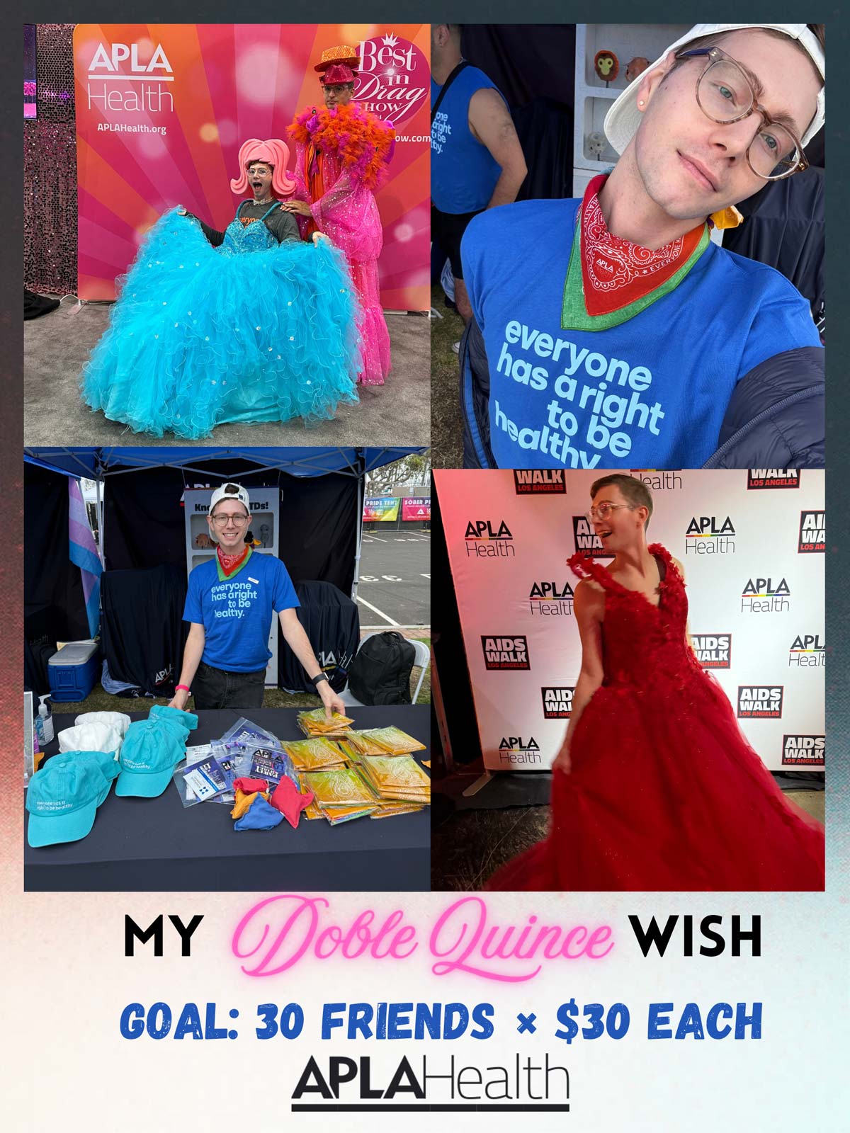 For my big 3-0, I’m asking 30 friends to donate $30 (or whatever you can) to APLA Health — an organization that’s brought so much purpose, aid, and awareness to my community.